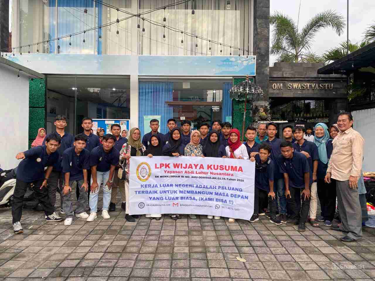 LPK Wijaya Kusuma adalah lembaga pelatihan dan pendidikan yang berfokus pada pembekalan keterampilan bahasa dan budaya bagi calon Pekerja Migran Indonesia (PMI). Berlokasi di Sidoarjo, Jawa Timur. Kami berkomitmen untuk memberikan pelatihan berkualitas, mendampingi proses penempatan kerja, serta memastikan kesejagteraan peserta hingga mereka berhasil bekerja di luar negeri